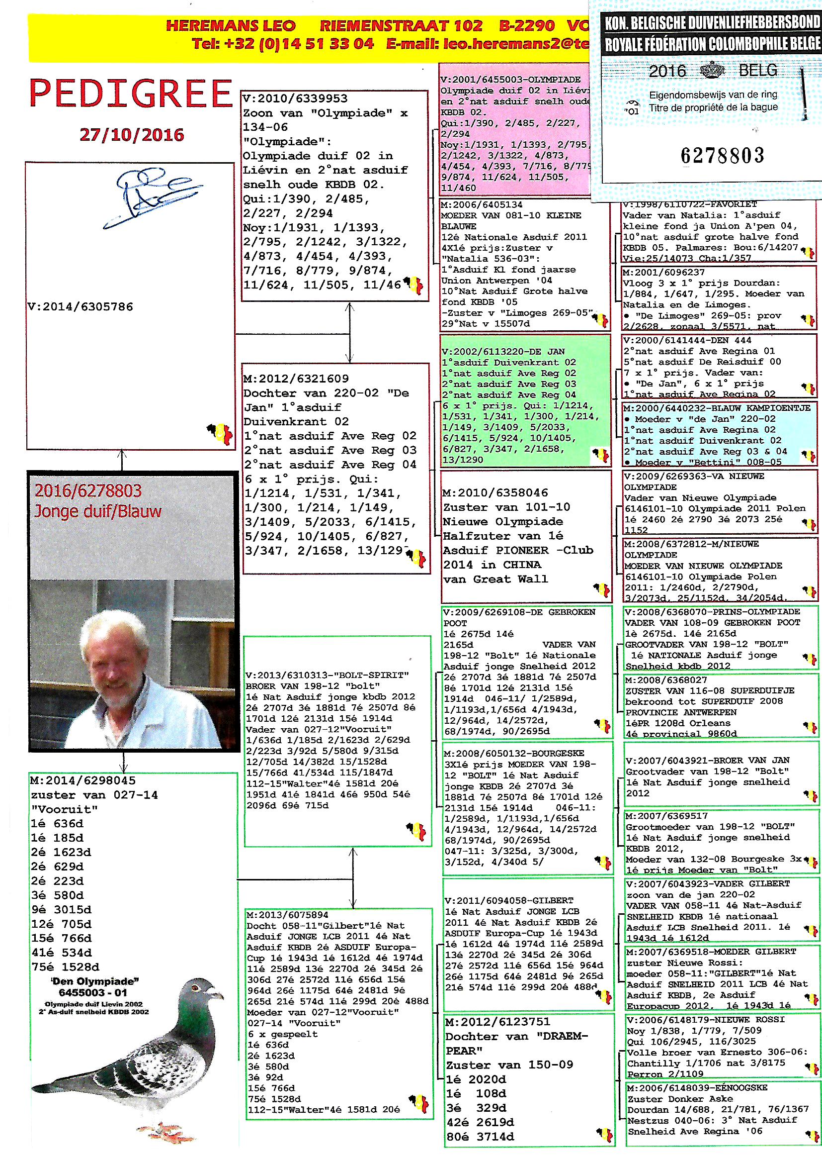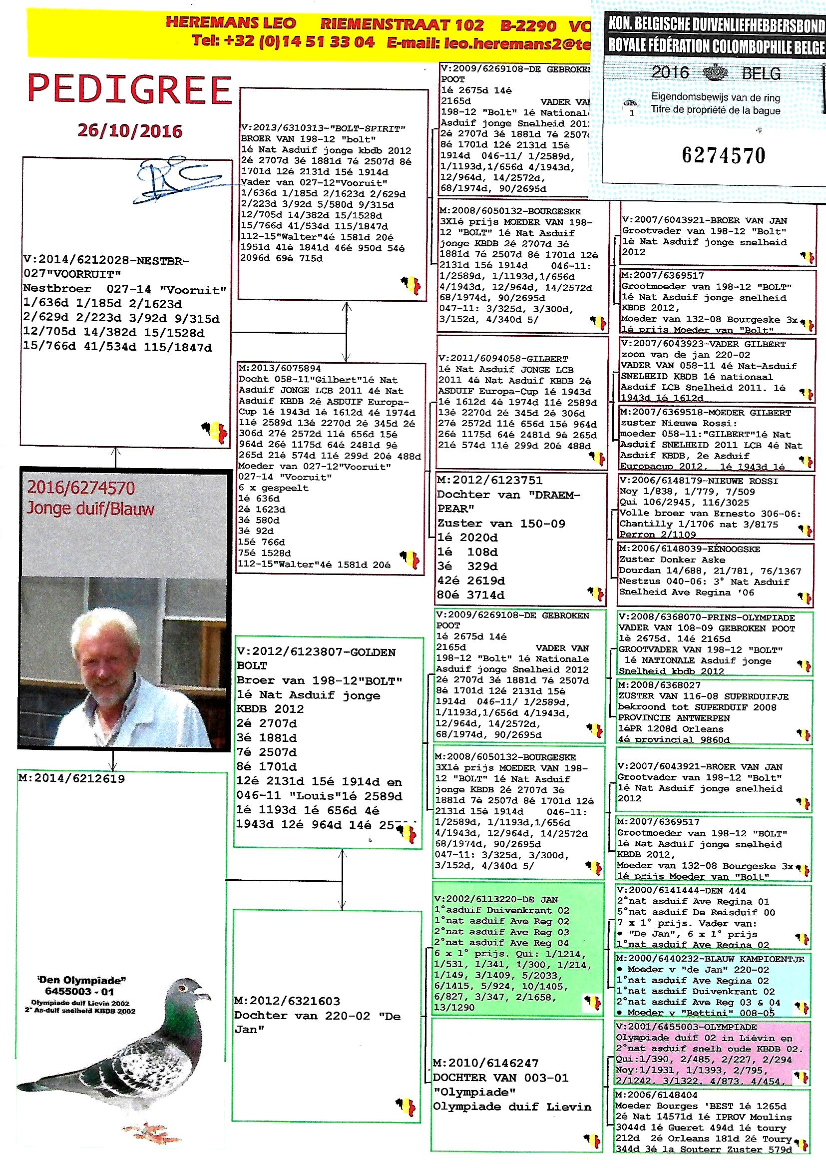 الاب حفيد البطل الاولمبياد 003 افضل طير سباق وطير تصليح لدى هيرمن كوستر منتج ابناء واحفاد ابطال في مختلف البلدان
