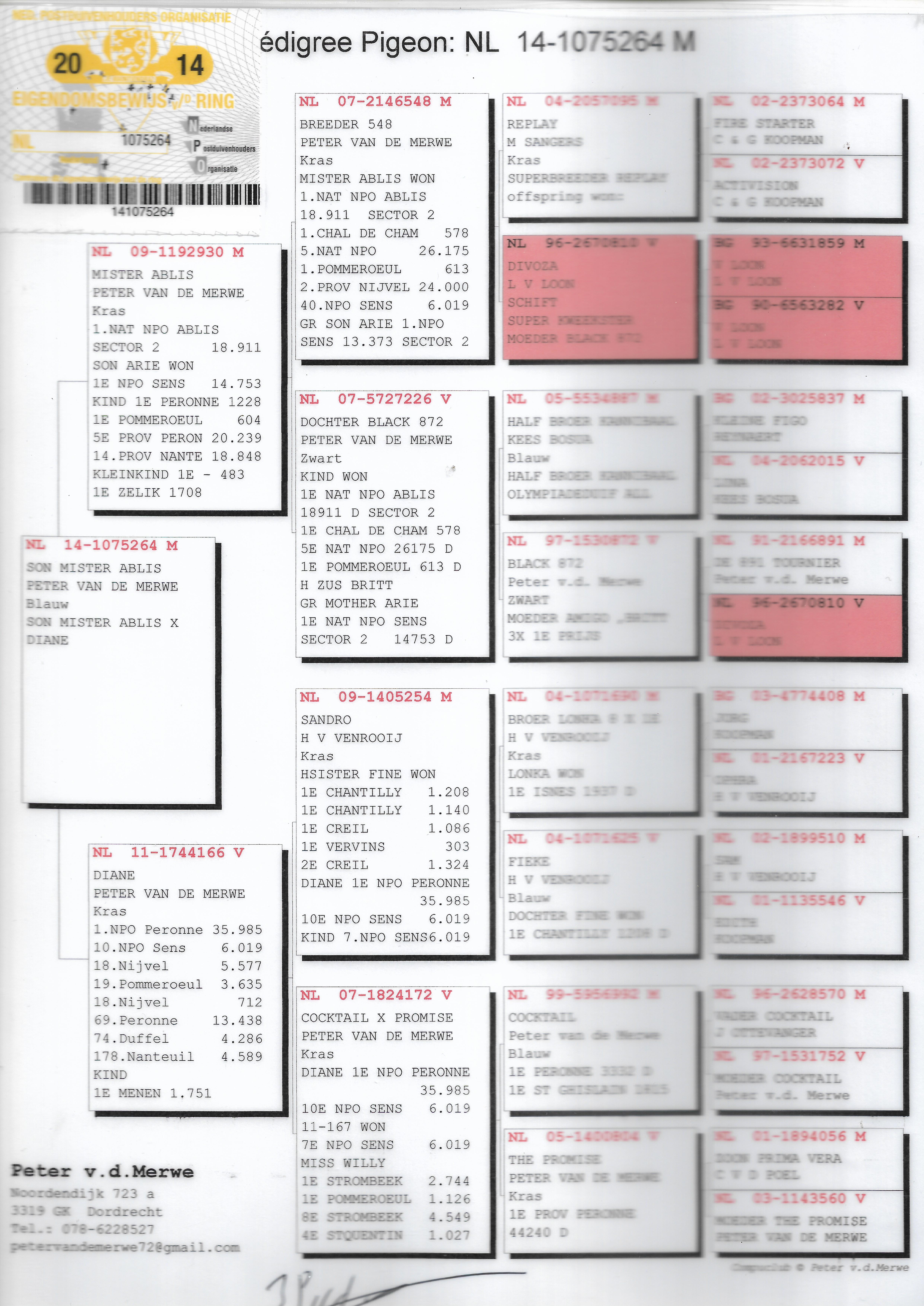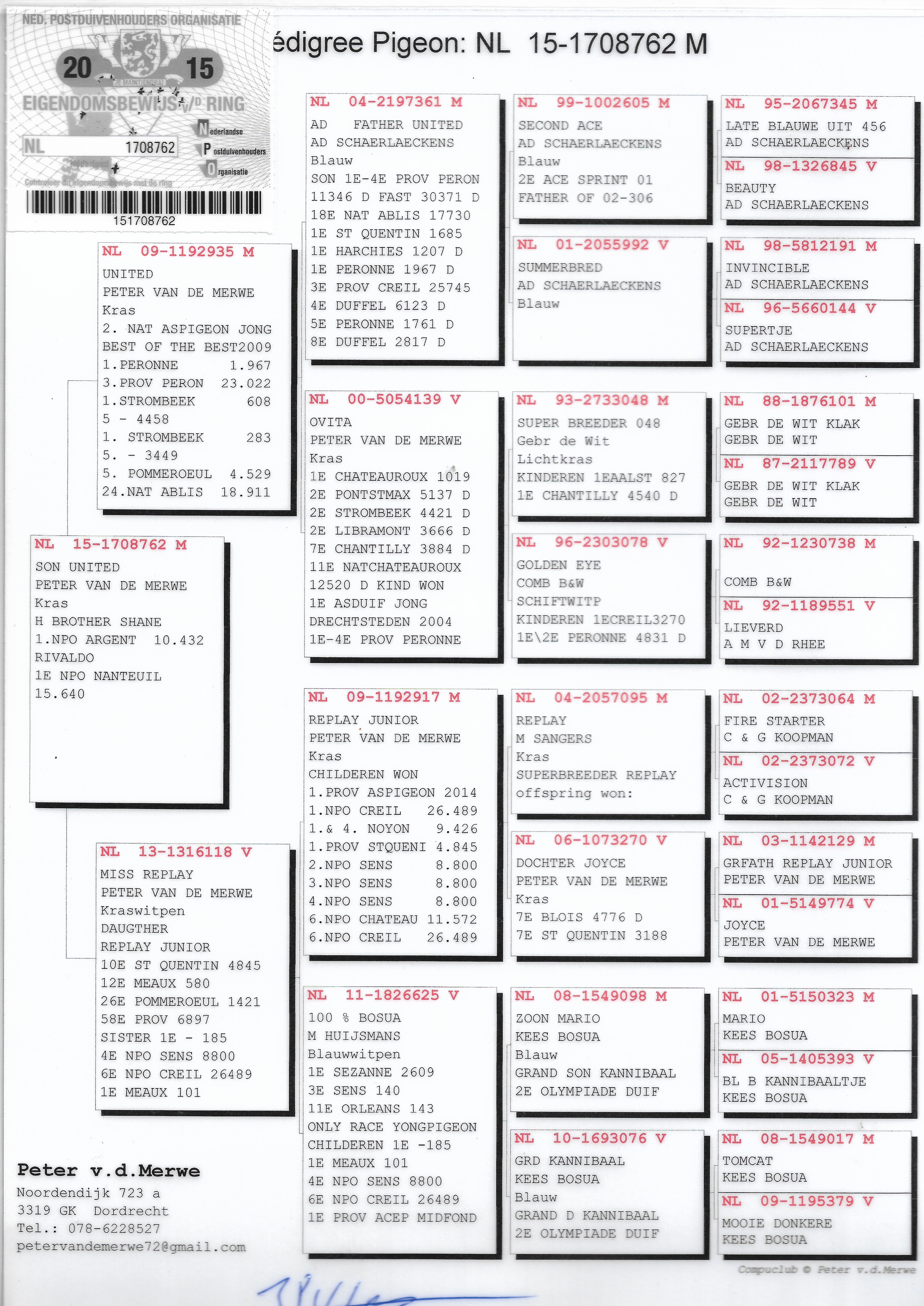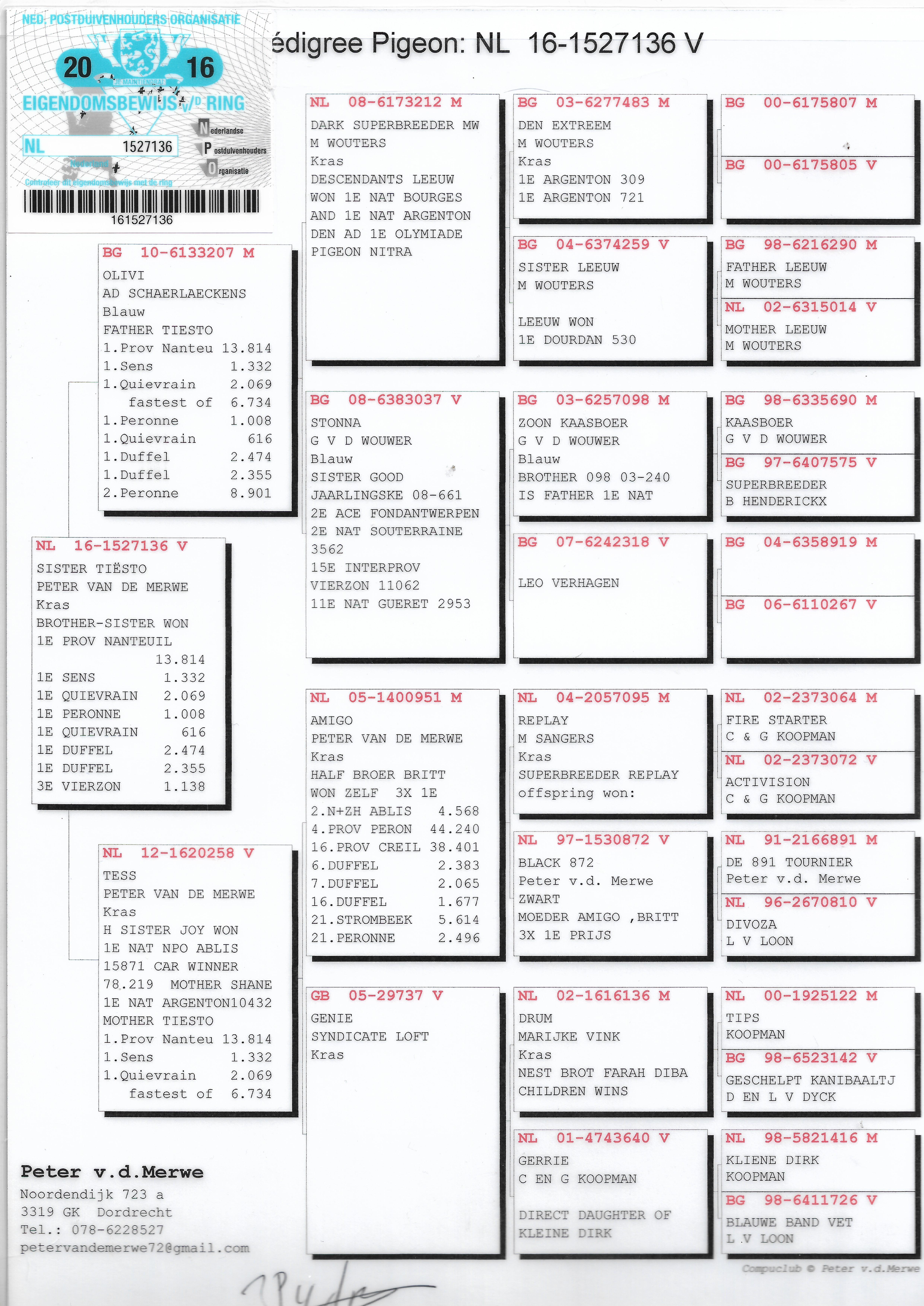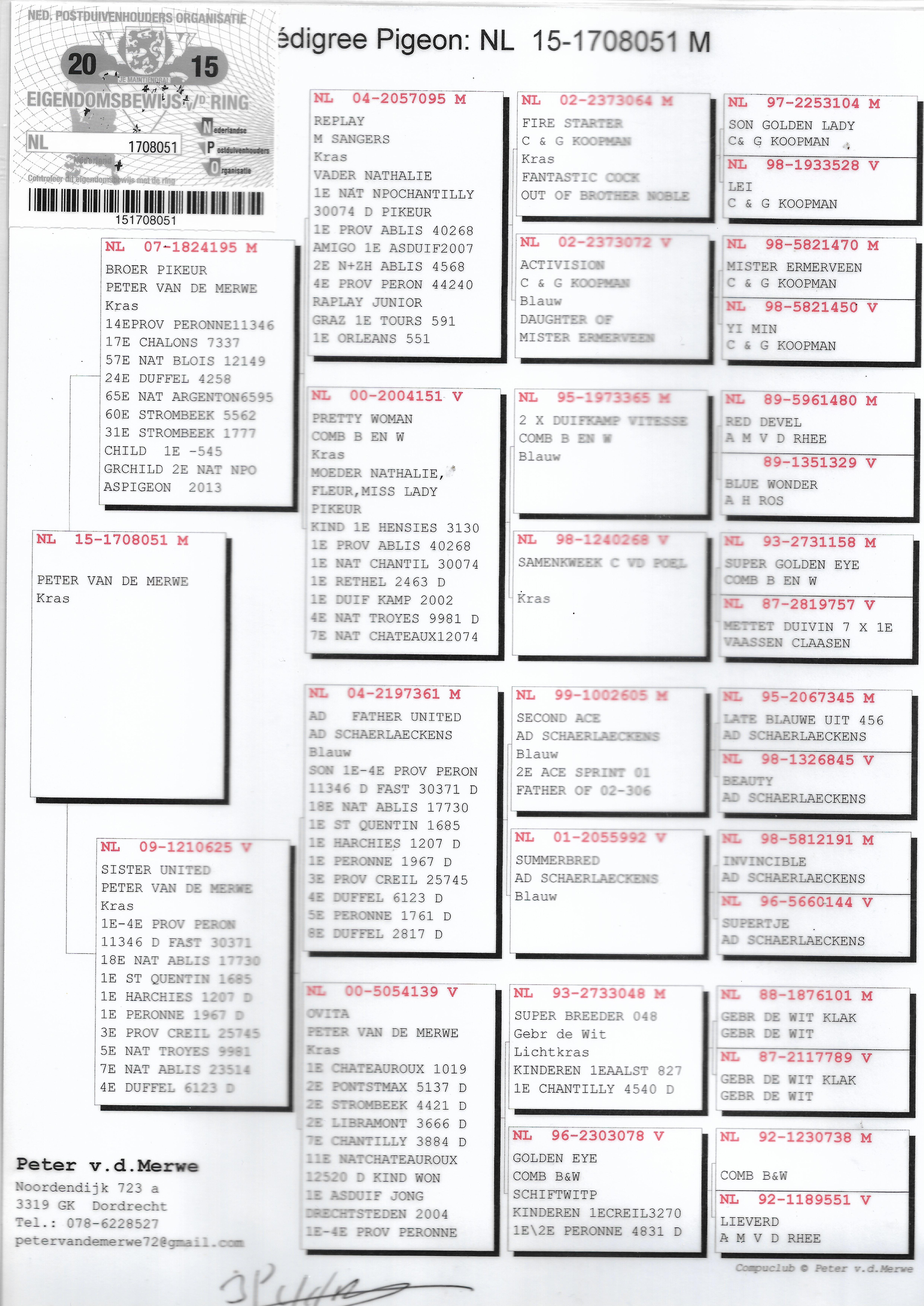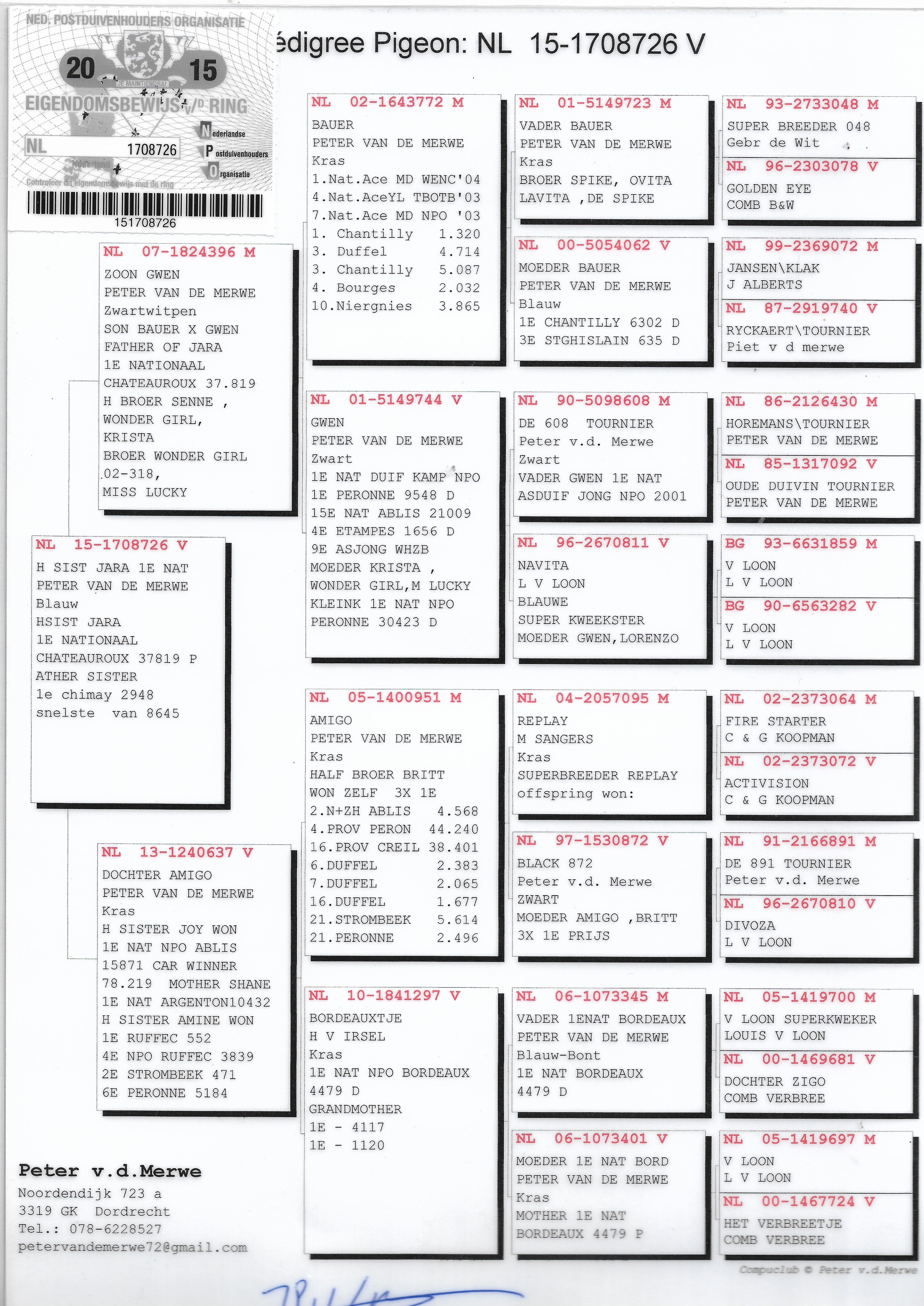 حفيد مباشر للبطل ربلي افضل طير تصليح لدى بيتر ميروي ابن اخ خليص للبطل PIKEUR الحاصل على