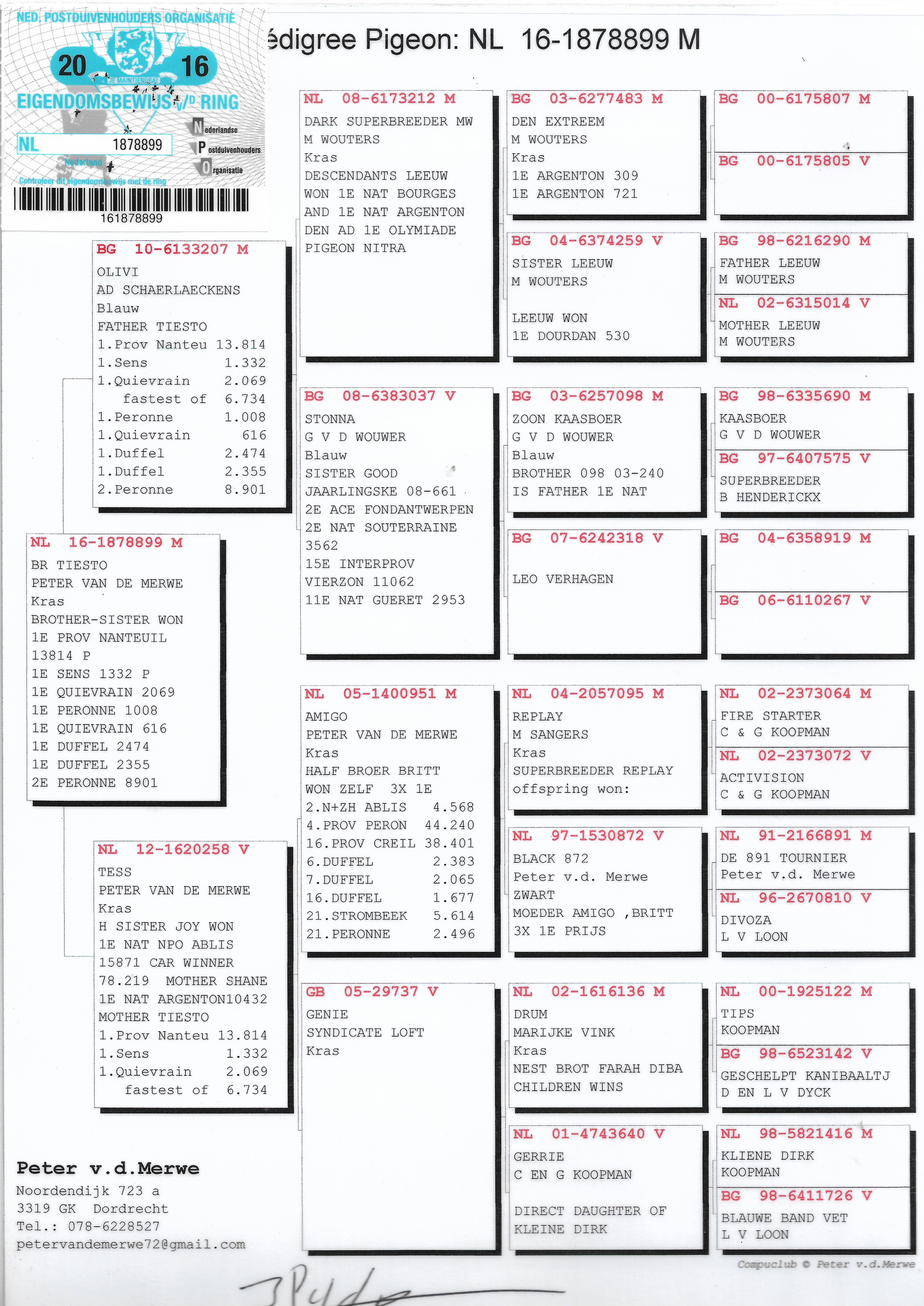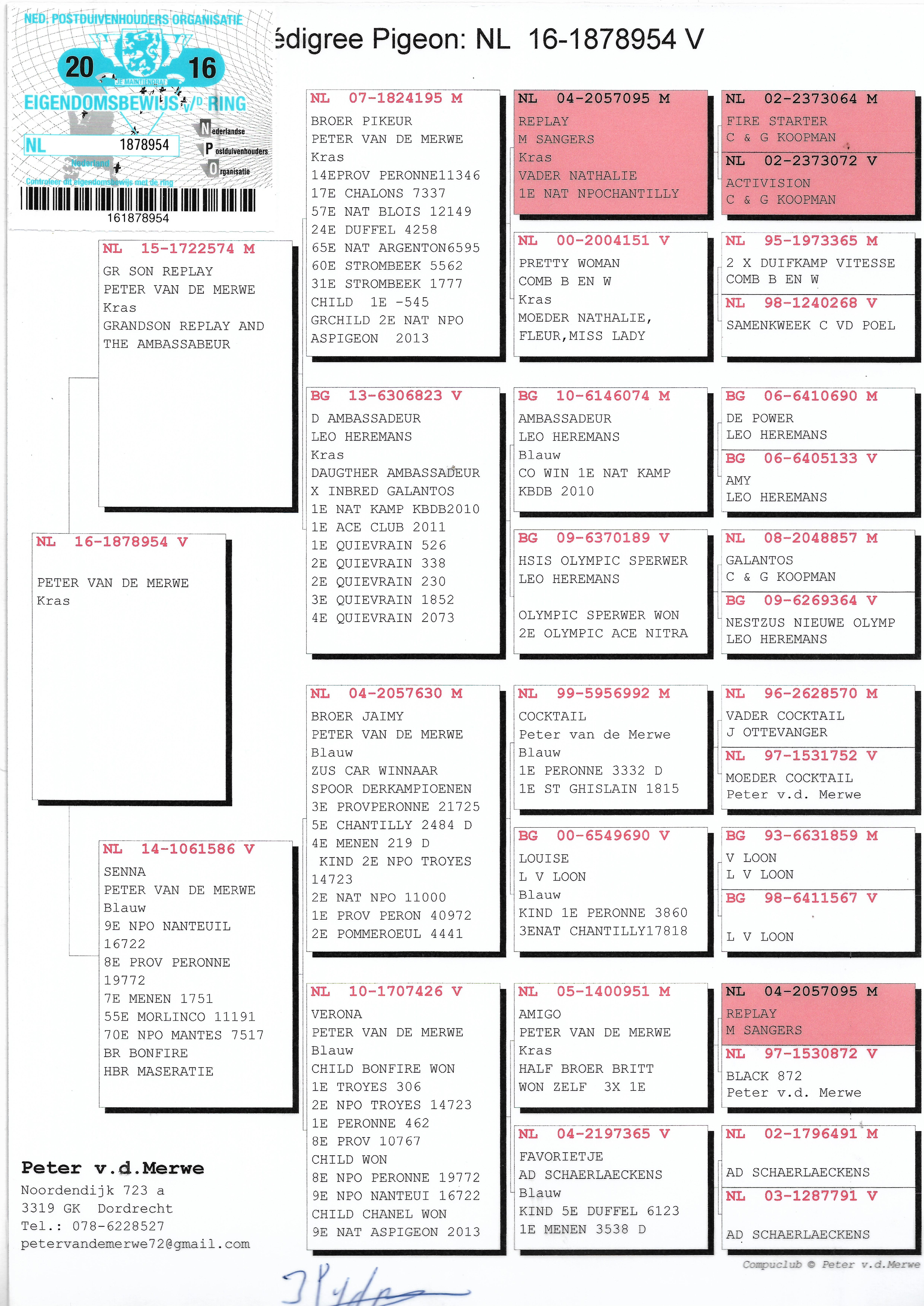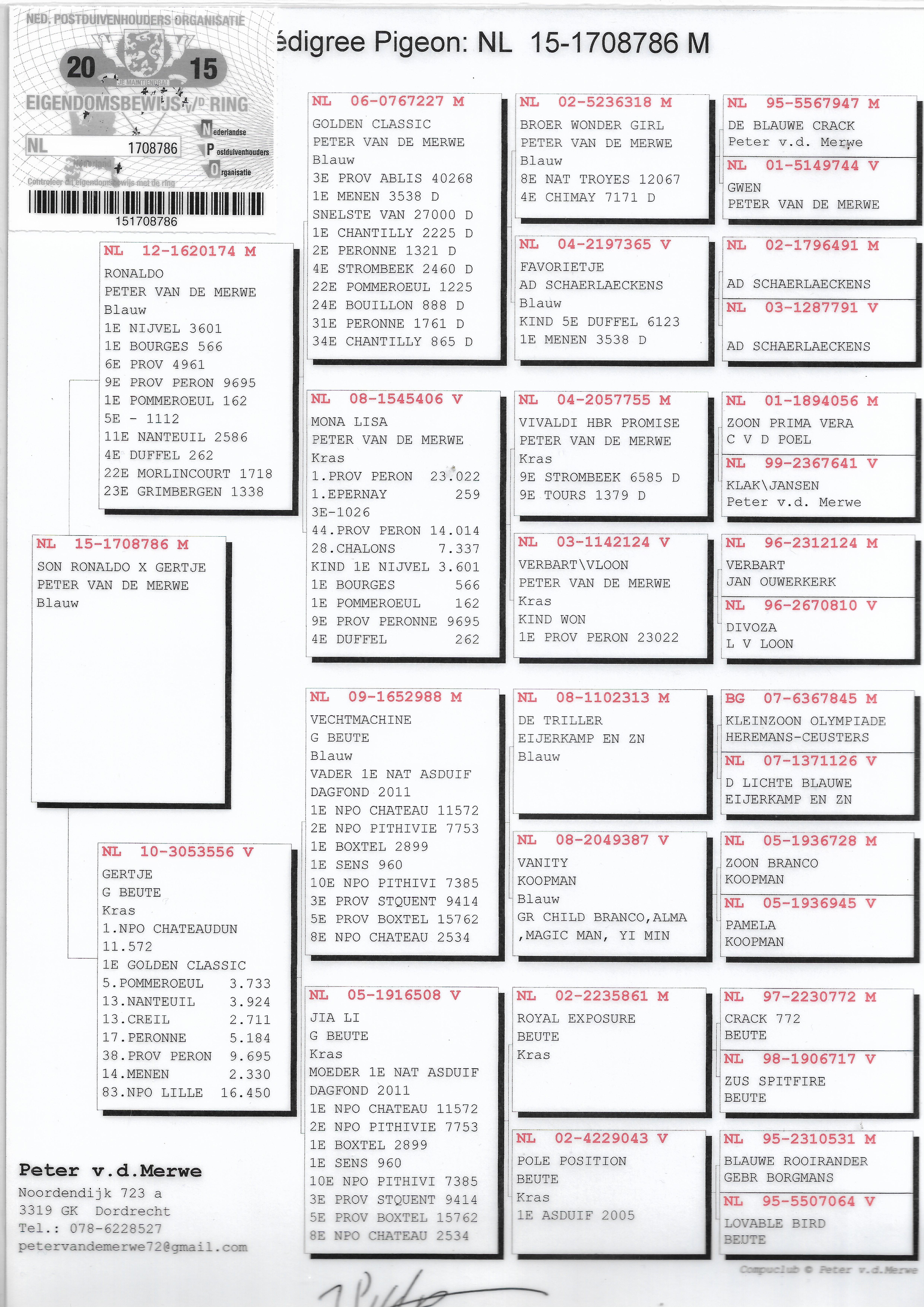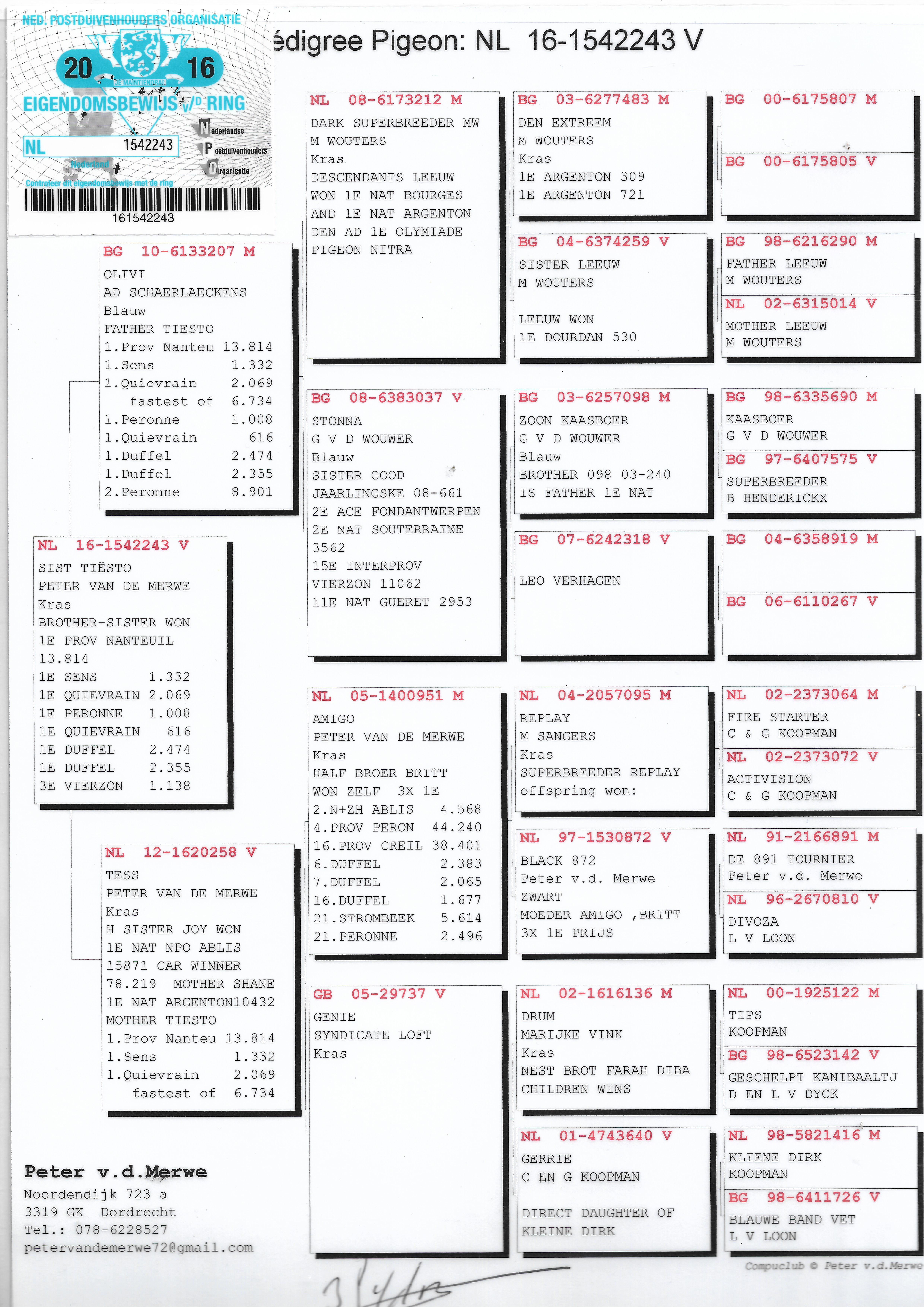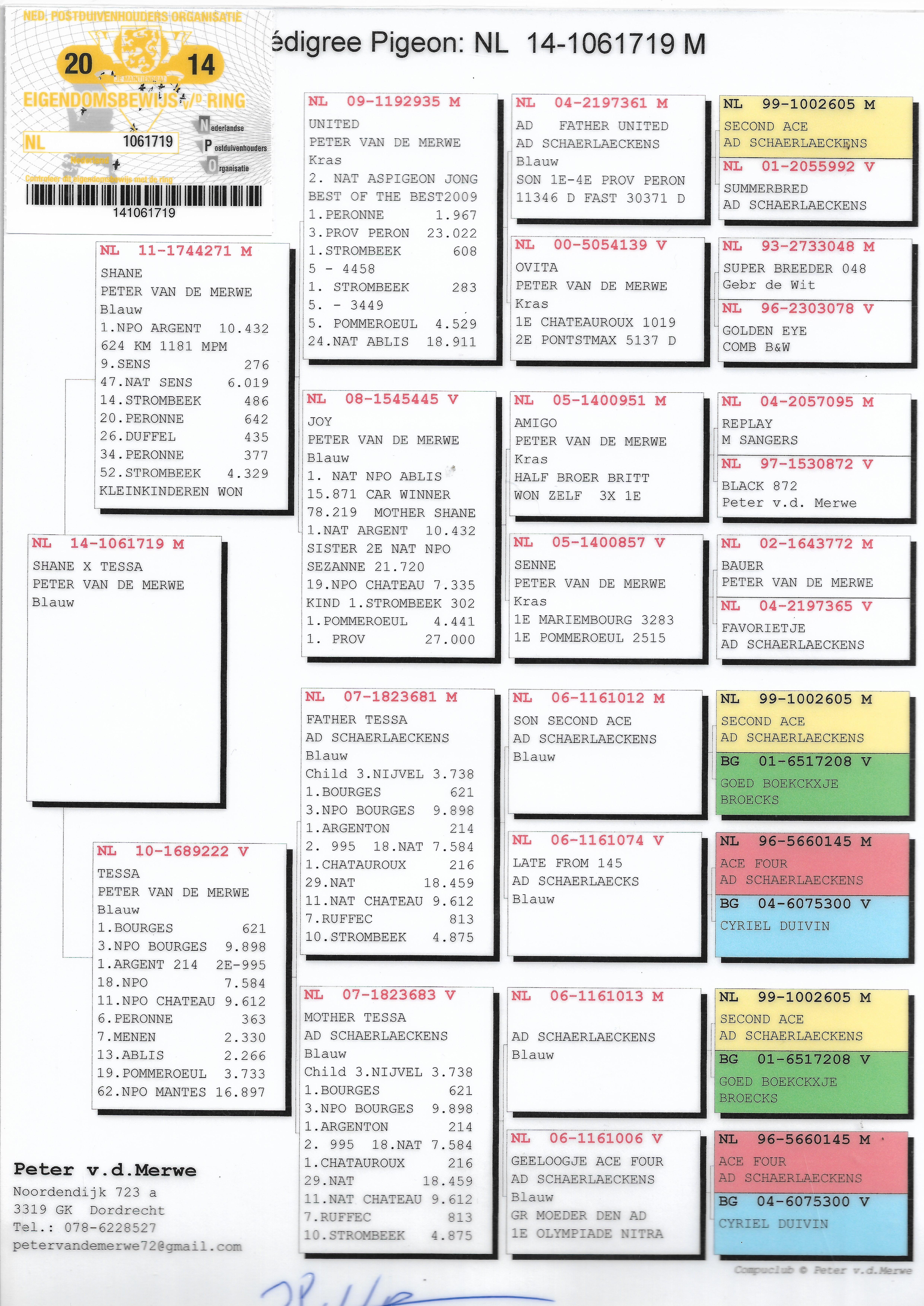 حفيد مباشر للبطل ربلي افضل طير تصليح لدى بيتر ميروي ابن اخ خليص للبطل PIKEUR الحاصل على