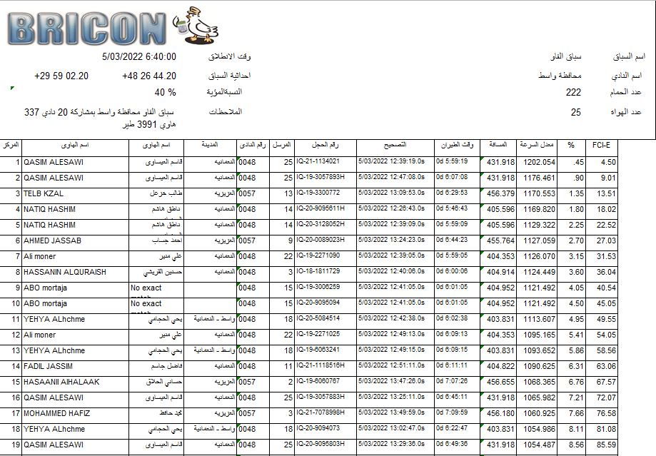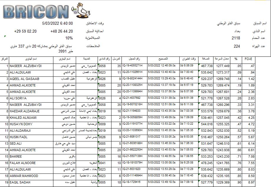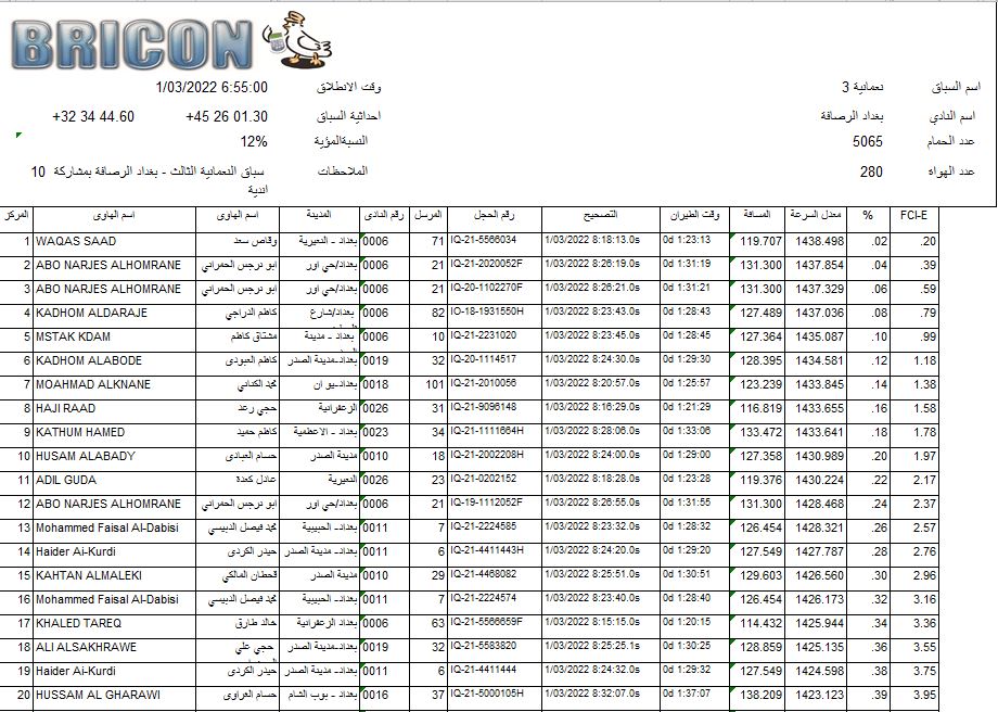 افظل طير للمسافات القصيرة بغداد الرصافة 4-10 سباقات افظل طير للمسافات القصيرة بغداد الرصافة 4-10 سباقات