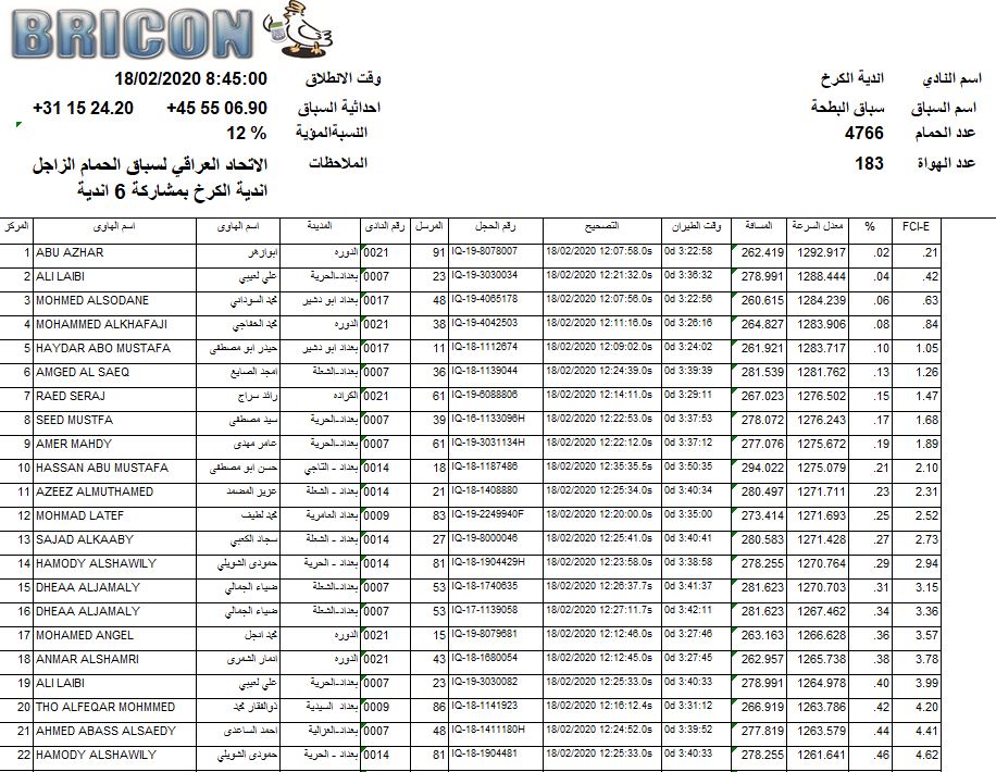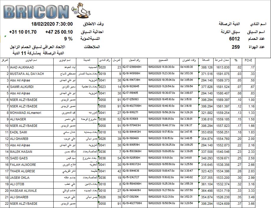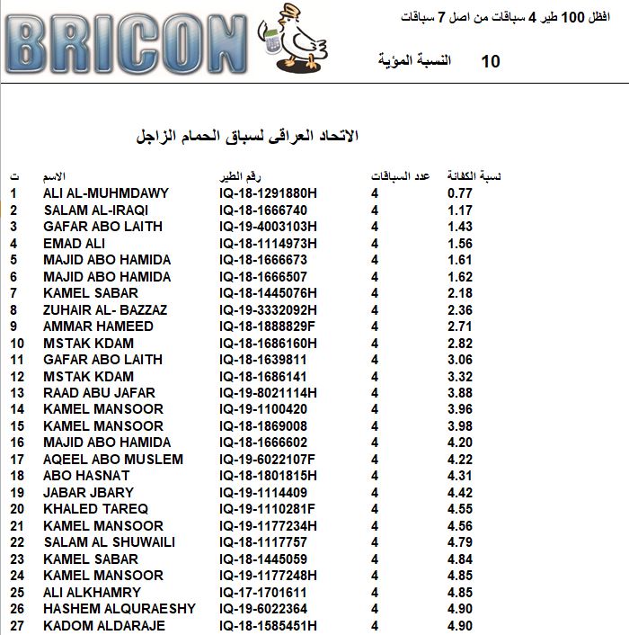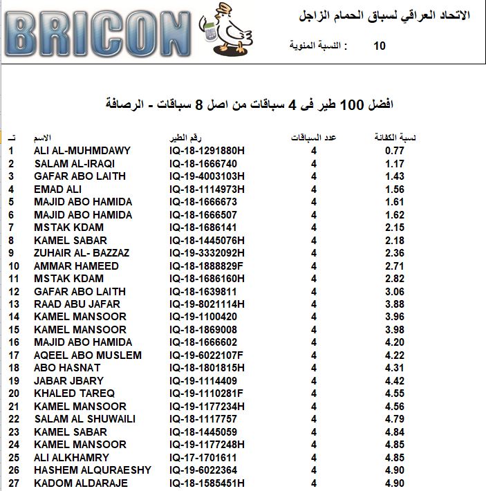 افظل 100 طير في 4 سباقات من اصل 8 الرصافة