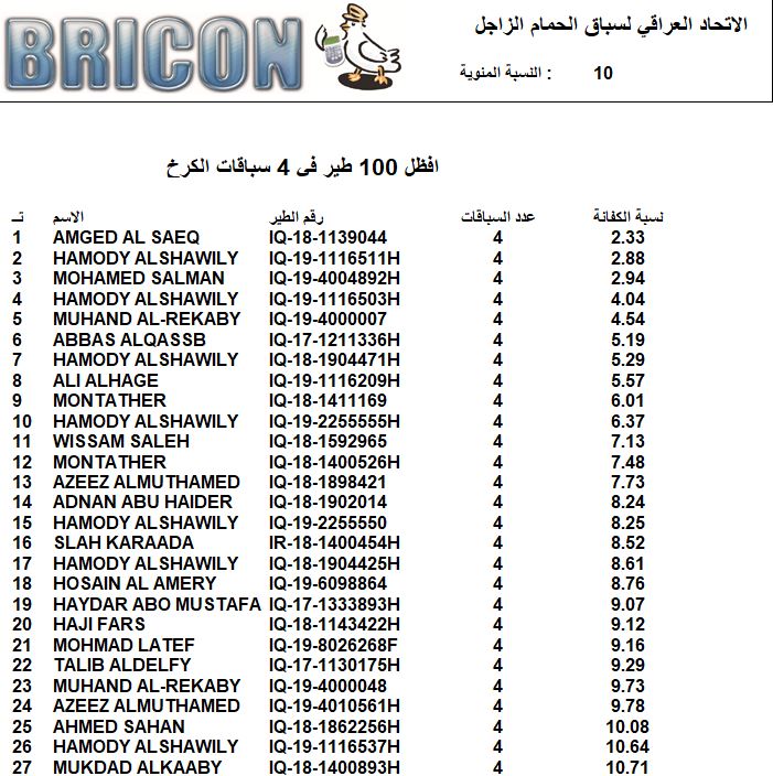 افظل 100 طير 4 سباقات الكرخ