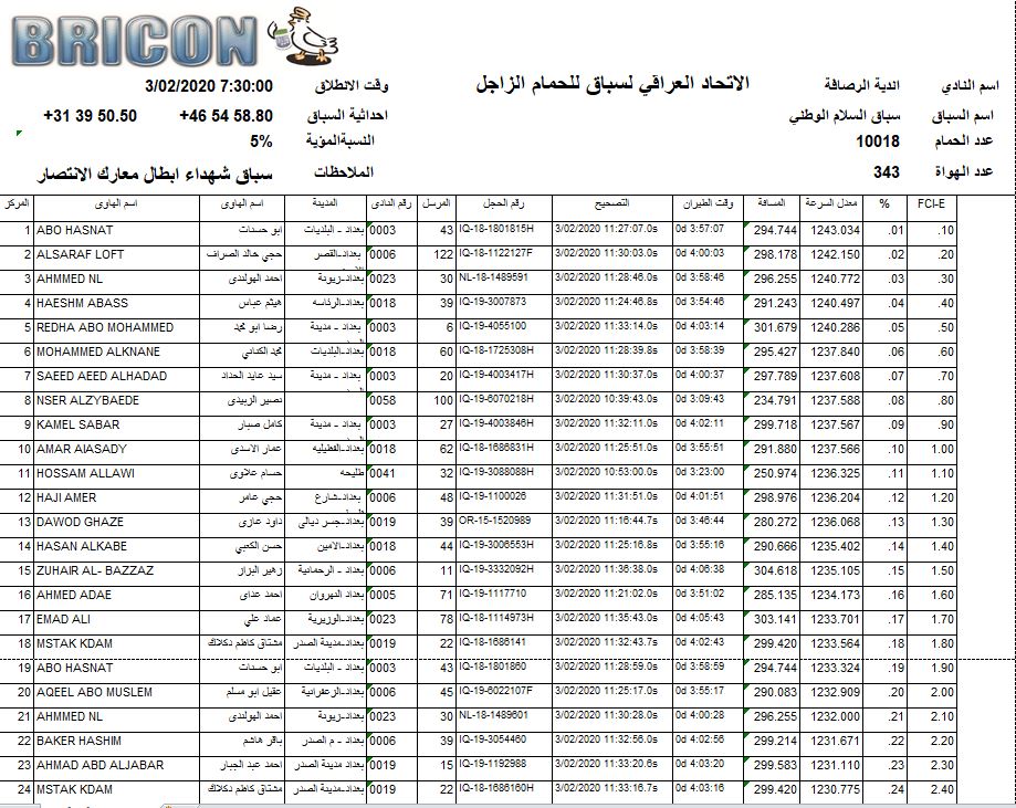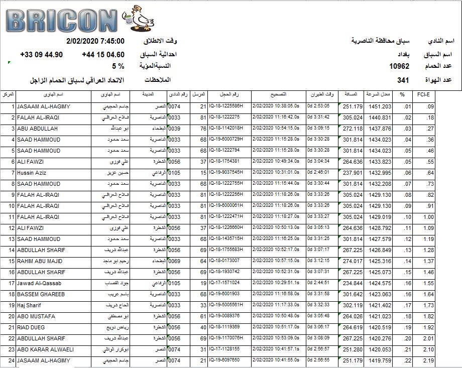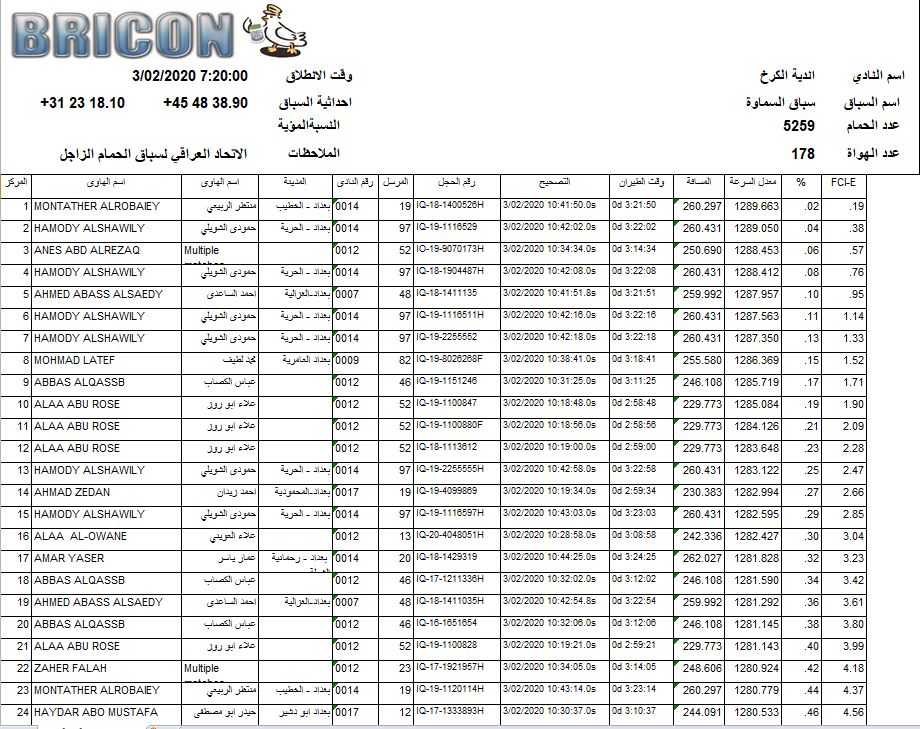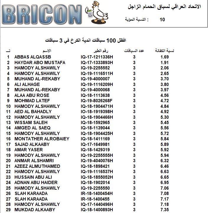 افظل 100 طير في 3 سباقات الكرخ