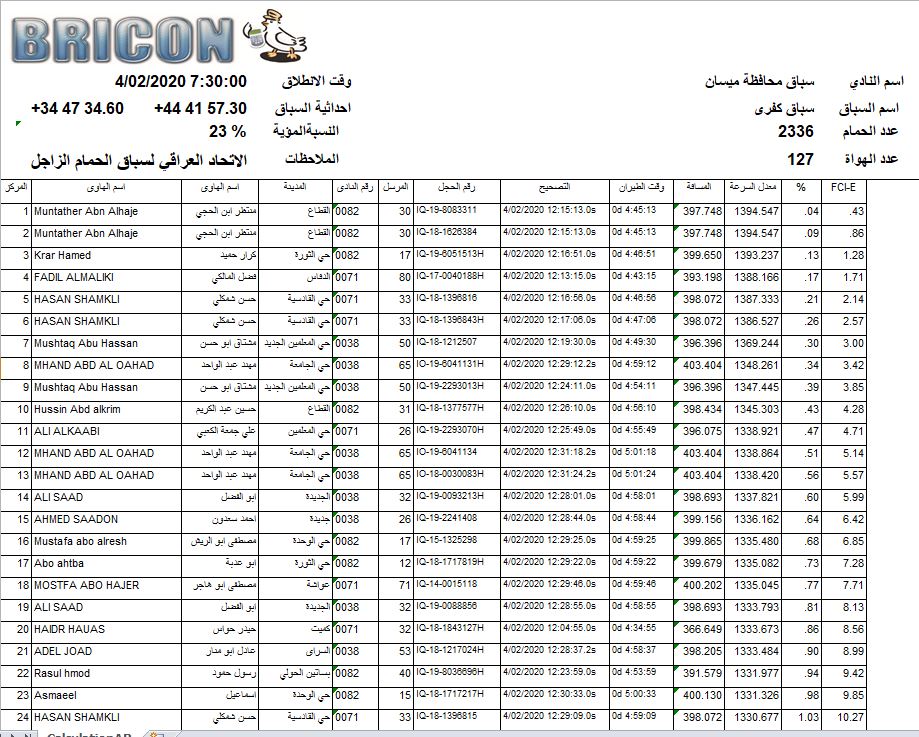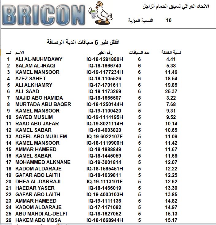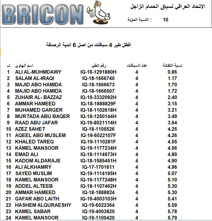 افظل 100 طير 4 سباقات من اصل 6 سباقات الرصافة