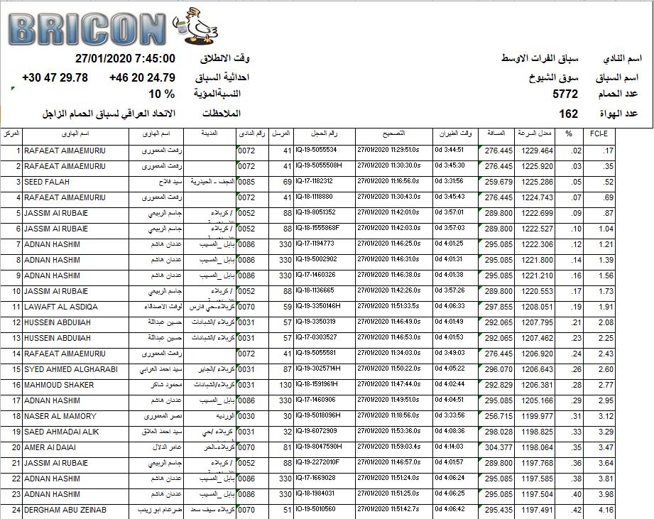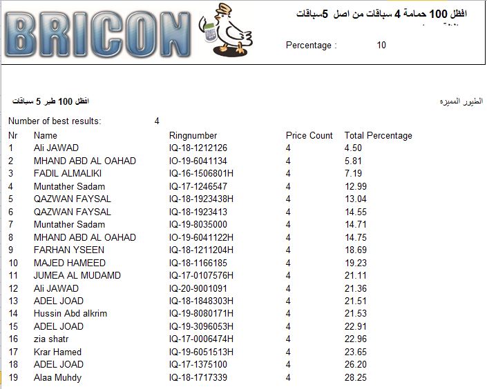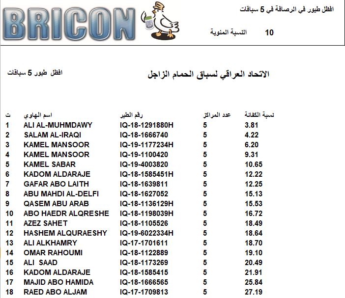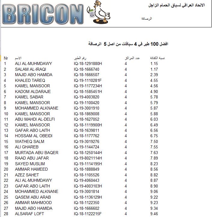 افضل 100 طير 4 سباقات من اصل 5 الرصافة