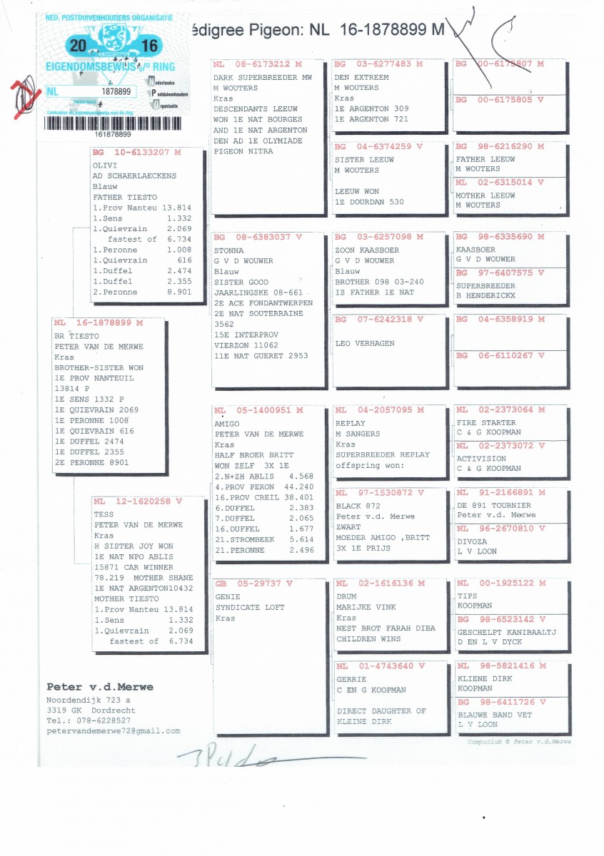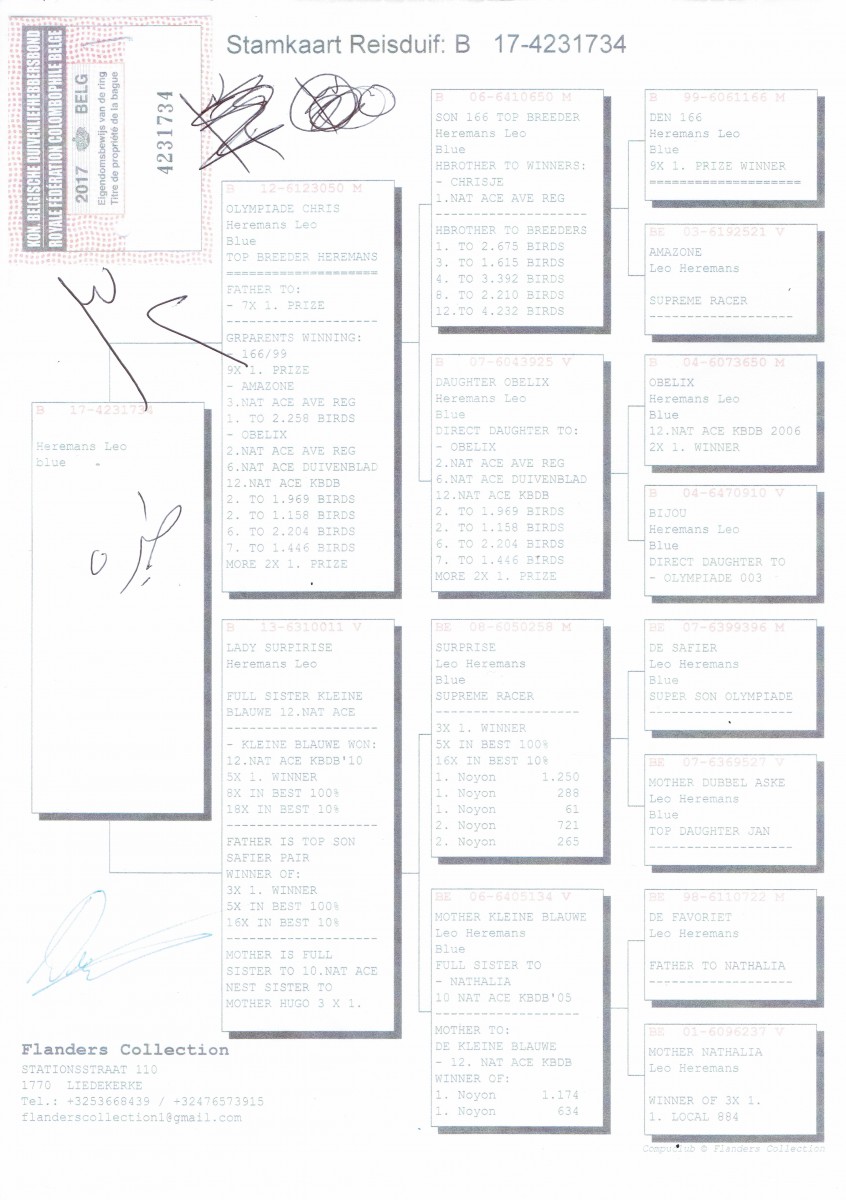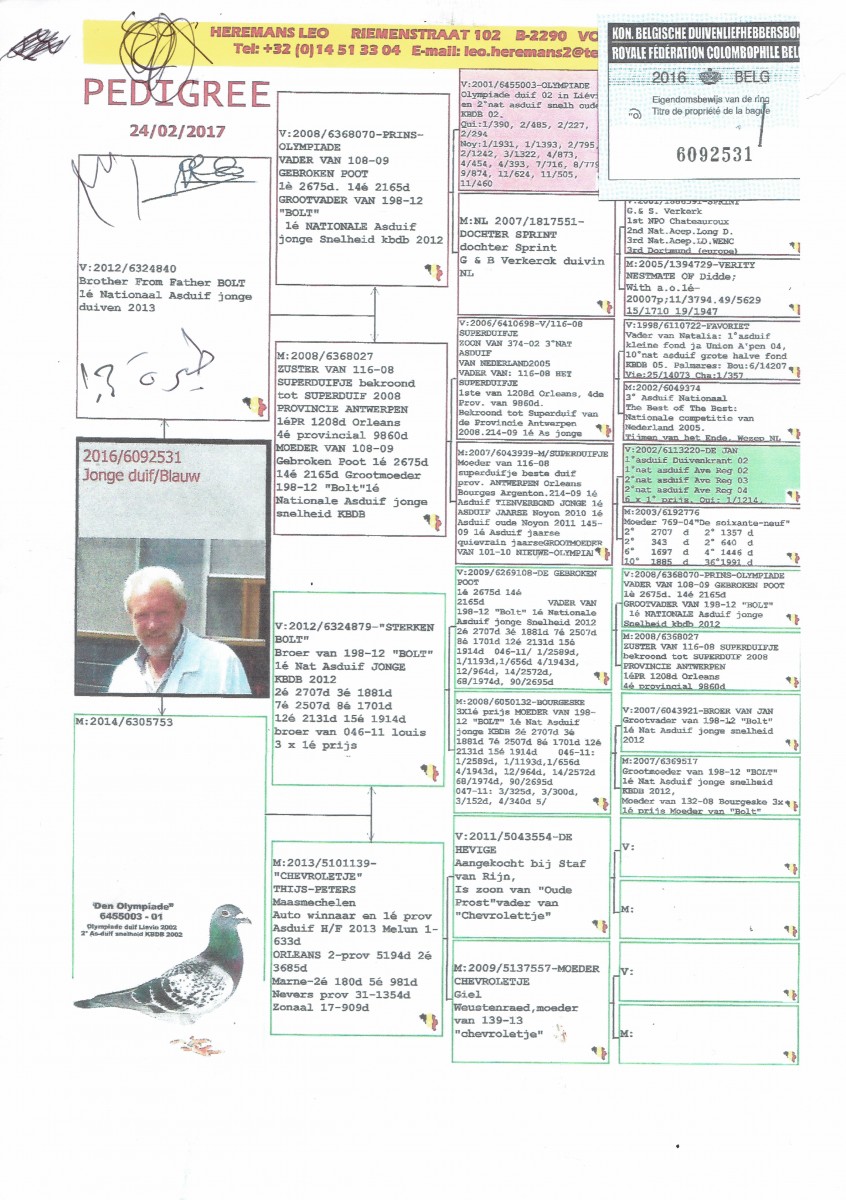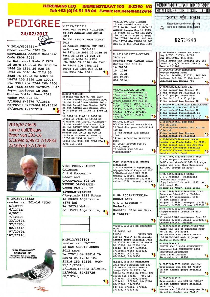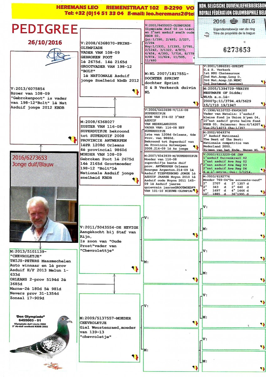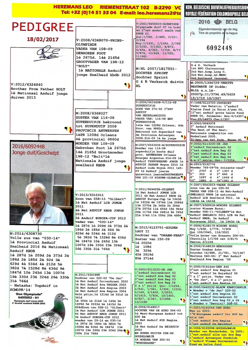 الذكر ابن مباشر للبطل الشهير الكتل اسرع طير في تاريخ بلجيكا والعالم الحاصل على