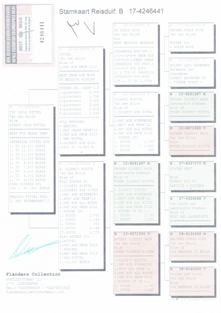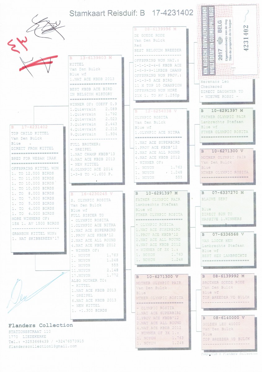 انثى بنت مباشرة للبطل الشهير الكتل اسرع طير في تاريخ بلجيكا والعالم الحاصل على