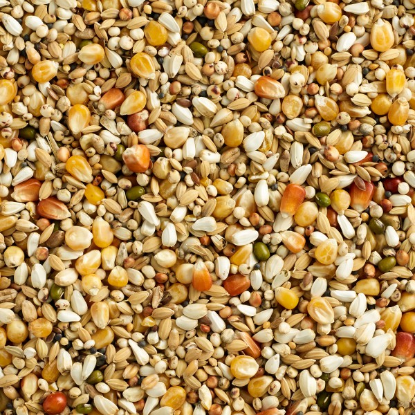 يضمن التركيب الشديد التنوع من الحبوب بمكونات صغيرة مقدارًا مثاليًا من هذه الأعلاف ويوفر كل البروتينات الضرورية للتربية الناجحة.
