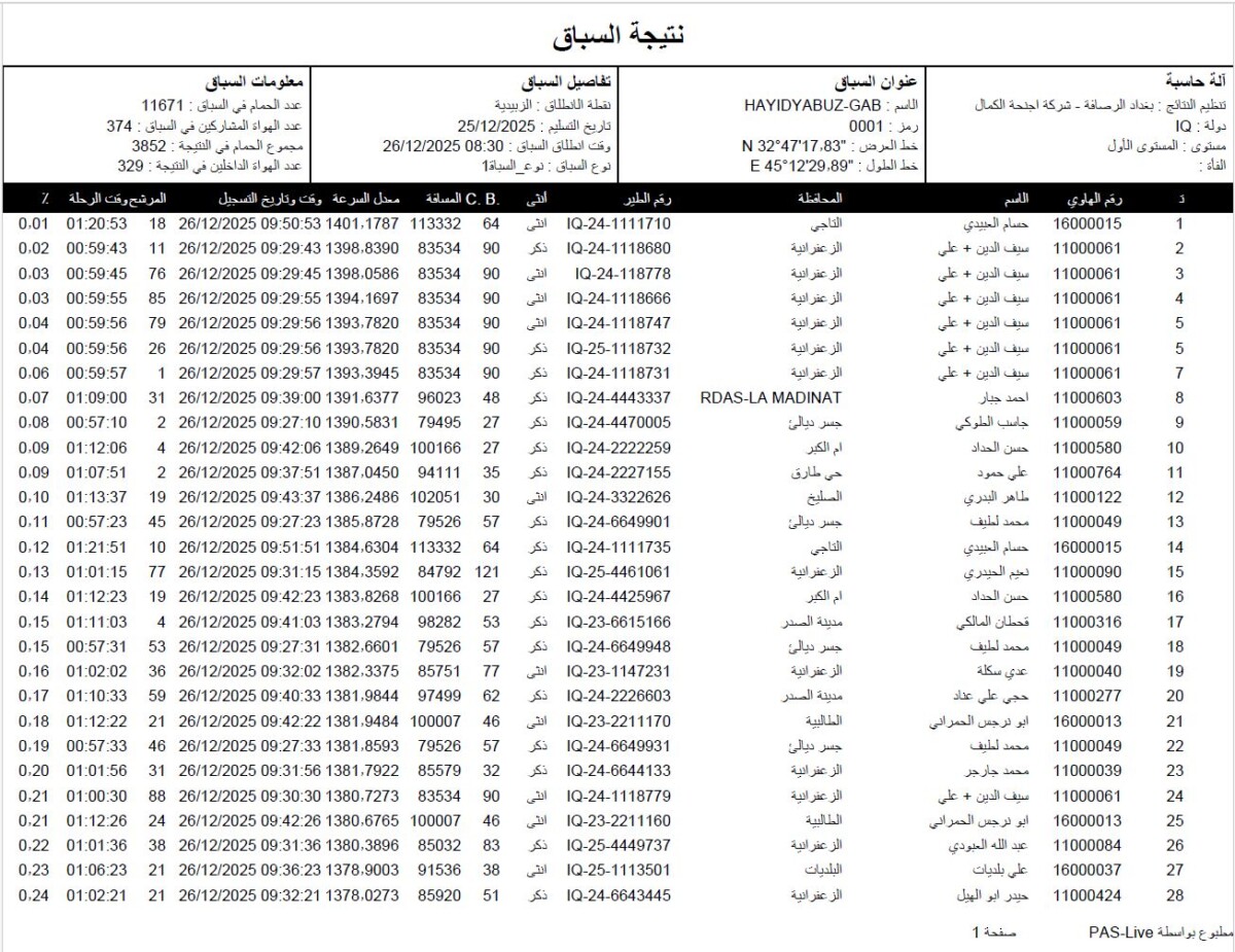 نتيجة سباق النعمانية بغداد – الرصافة